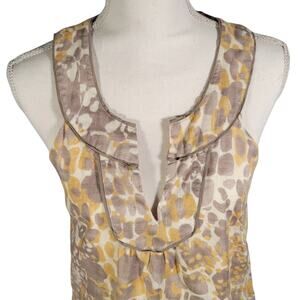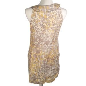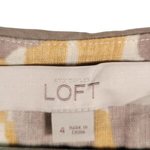 LOFT Linen Shift Dress 4 Yellow Gray Abstract Print Ruffle Neck Lined