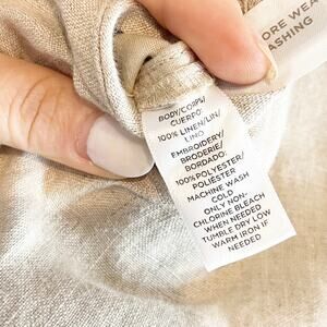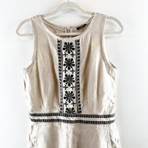 LOFT Linen Sleeveless Embroidered Romper Tan Beige Black 2 Petite