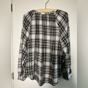 LOFT Linen blend Lightweight Peasant Style Plaid Blouse M