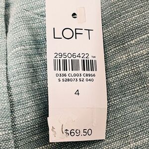 Women’s LOFT Linen Blend Side Button Shift Skirt Light Green With Shimmery Threads NWT