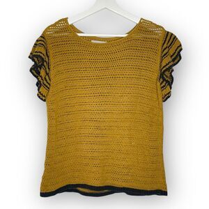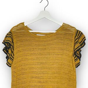 LOFT Loft Ann Taylor Crochet Ruffle Sleeve Top Orange Yellow Blue Women’s Small