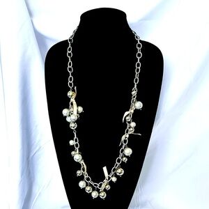 LOFT Long Silver Bauble Necklace w Tan Hemp Ties NWT
