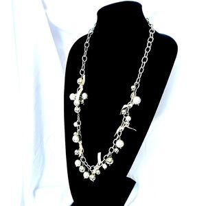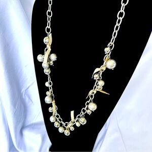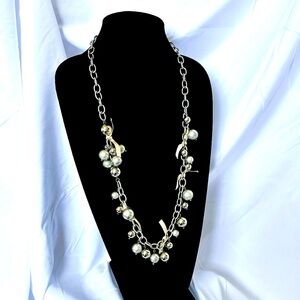 This LOFT Long Silver Bauble Necklace features a blend of sleek silver baubles and natural tan hemp ties for a unique and earthy yet sophisticated look. The combination of metallic shine and rustic elements makes it a versatile accessory that can easily transition from casual daytime outfits to more polished evening looks. New with tags (NWT), this necklace is a chic addition to any jewelry collection, adding texture and style to your wardrobe.