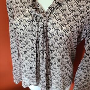 LOFT Long Sleeve Blouse Tan and Black Size Small