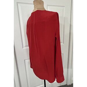 LOFT Long Sleeve Henley Utility Blouse Top Red Womens Size S