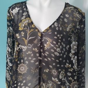 LOFT Long Sleeve Sheer Black Floral Tunic Size XL