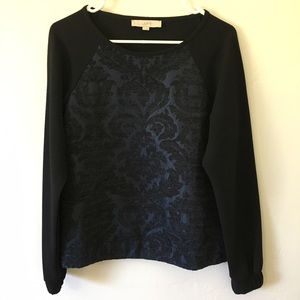 LOFT Long Sleeved Top with Damask Front w Sparkle