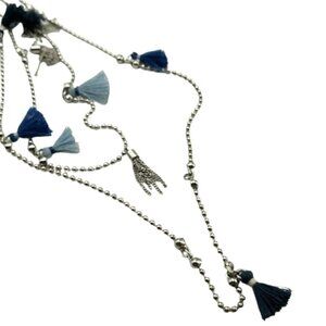 LOFT Long Tassel Necklace Silver Ball Chain 36 inches