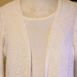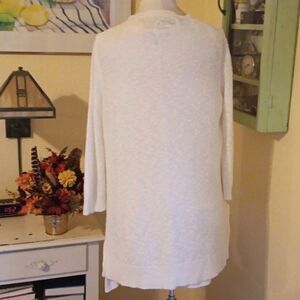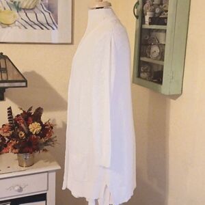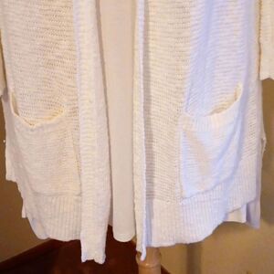 NEW Open cardigan in a loose knit of linen and cotton. Long sleeves. Size L measures 48 at chest and bottom hem. 33 long from shoulder to hem. Sleeves 21.5 inches long. Delicious creamy white.
