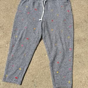 LOFT Lou & Gray size XXL cropped comfy pants. Polyester /cotton blend. Gray with hearts, smiles, champagne glasses, roses, arrows. Pocket in front and in back. Elastic and drawstring waist.