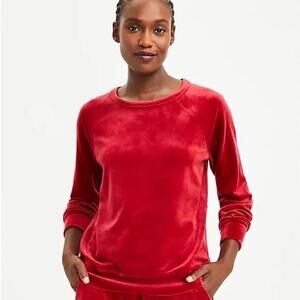 LOFT Lou & Grey Rusty Red Velour Crew Neck Top Size S