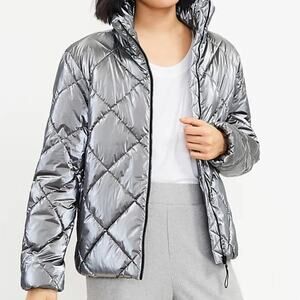 LOFT Lou & Grey Shimmer Quilted Dark Slate Puffer Jacket Size Extra Small NWT