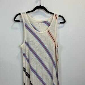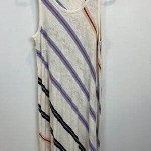 LOFT Lou & Grey Small Multi Diagonal Stripe Slub Jersey Tank Slit Maxi Dress