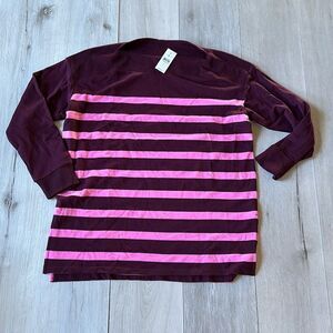 LOFT Lou & Grey Striped Boatneck Tunic Sweater – Small, Burgundy/Pink Stripe NWT