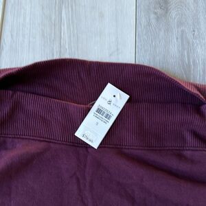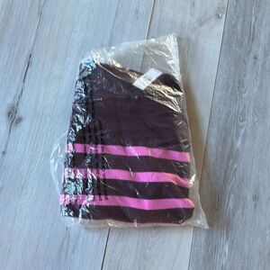 The Lou & Grey Striped Signaturesoft Boatneck Tunic Sweater is crafted in the brand’s ultra-soft knit, known for its lightweight feel and drapey comfort. Designed with a relaxed, tunic-length cut, it features horizontal stripes in burgundy and pink, 3/4 length sleeves, and a wide boat neckline for easy wear. The extended length makes it versatile to pair with leggings or denim. No longer available on LOFT’s site, this sweater remains a cozy favorite from Lou & Grey.