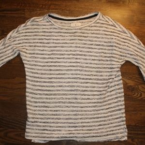 This super soft Lou & Grey striped sweater is perfect for a casual and cozy look. This sweater looks great with jeans, leggings, or bundled up with a scarf.