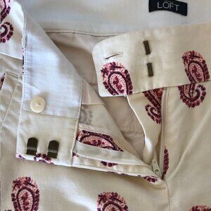 LOFT Marisa Ankle Cream Pink Paisley Pants 8