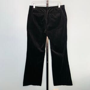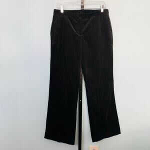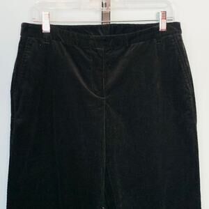 A versatile winter wardrobe staple! A classic pair of fine wale corduroy pants with a wider leg that can be dressed up for parties and the holidays or worn as part of a casual weekend look. Diagonal front pockets, zipper fly with metal hook and inner button closure. In excellent condition