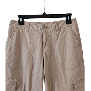 LOFT Marisa Capri Cropped Khaki Cargo Linen Cotton Outdoor Pants Neutral 2