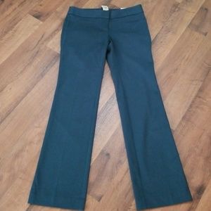 Loft Marissa boot cut slacks, cotton/rayon/spandex blend for stretch - sits low on waist and straight through the hips. Spruce Green color. Inseam length 29-1/2”.