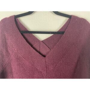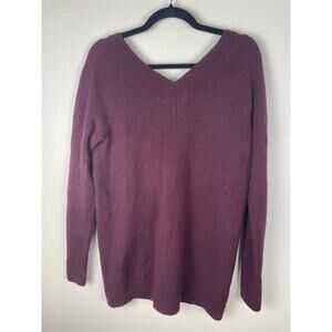 LOFT Maroon Burgundy Dark Red Double V-neck merino blend women's sweater size M