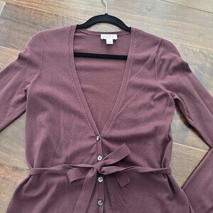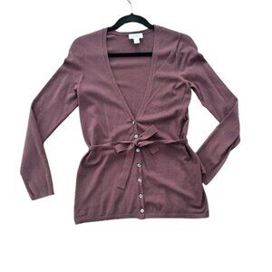 LOFT Maroon Burgundy Tie Front Button Up Cardigan Sweater Top Size Medium