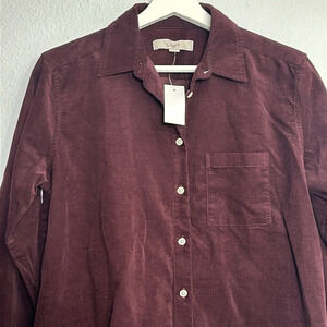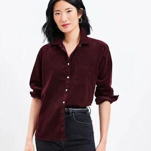 LOFT Maroon Corduroy Cotton Long Sleeve Button Down Womens Size XSmall NWT