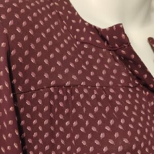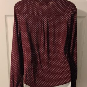 Stylish maroon blouse with subtle pattern. Features long sleeves and a button front. Perfect for any occasion. soft stretchy comfortable material.