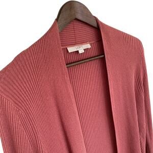 LOFT Mauve Open Front Ribbed Cardigan - Large
