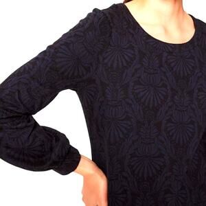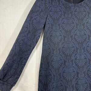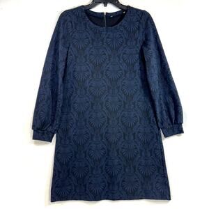 LOFT Medium Dress Jacquard Long Sleeve Balloon Medallion Blue Knee-Length Party