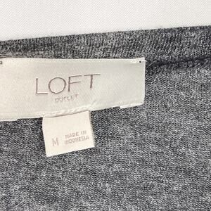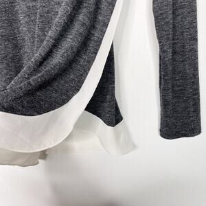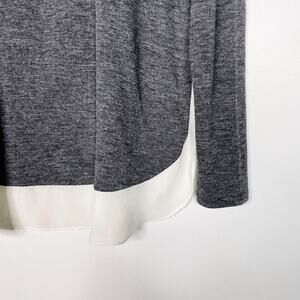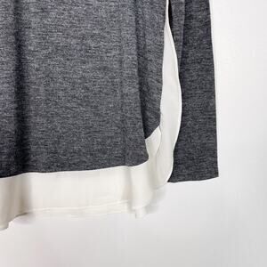 LOFT Medium Mixed Media Long Sleeve Top Heather Gray Cream Crew Neck Side Split