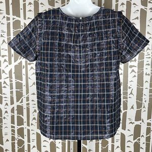 LOFT Metallic Finish Plaid Short Sleeve Blouse NEW L