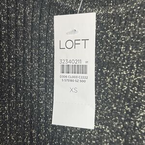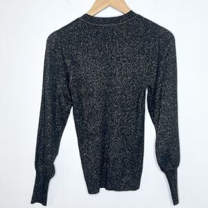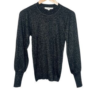 LOFT Metallic Ribbed Sweater Black Women’s XS Bishop Sleeve Sparkly Crewneck
