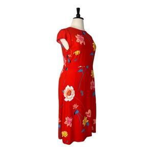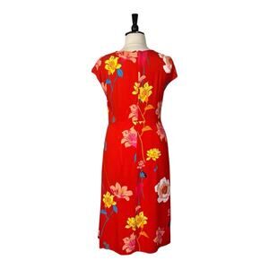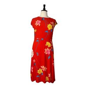 LOFT Midi Dress Cap Sleeves A-line Red Pink Multi Floral Women’s Plus Size 14