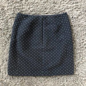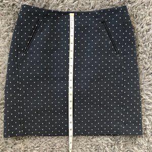 Ann Taylor LOFT mini pencil skirt. Blue and black with white embroidered polka dots. Nice thick textured fabric. Lined throughout.