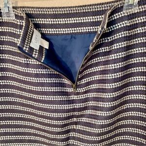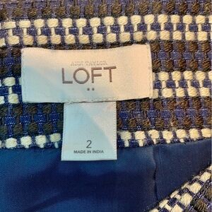 LOFT Mini Skirt Size 2 Blue Tan Black Woven Acrylic Cotton Full Lining Back Zip