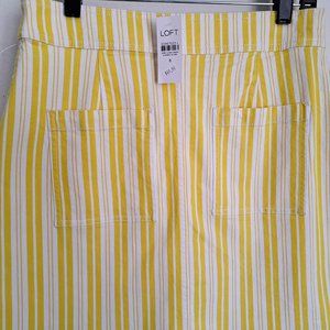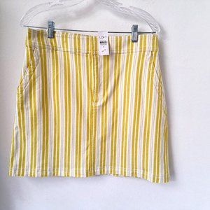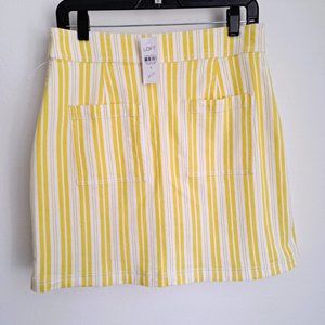 LOFT Mini Skirt Striped Yellow/ White Front/Back Pockets Size 8 NWT