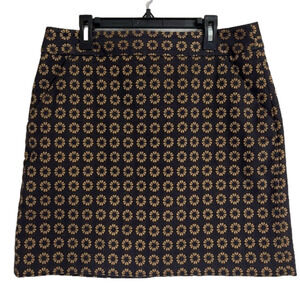 Cute skirt with pockets on the front/sides and a zippered back. The colors are brown, tan, and a hint of navy.