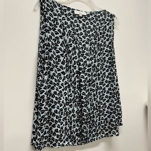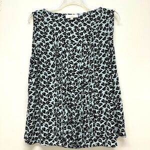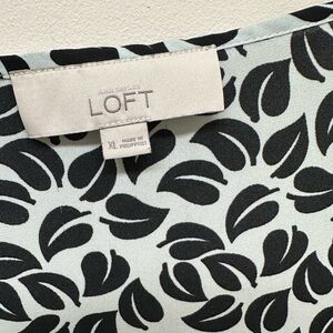 LOFT Mint Green Black Leaves Pleated Relaxed Blouse sz XL