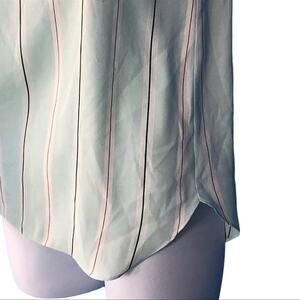 LOFT Mint Green & Black-White Vertical Stripe Sheer Tank Top S – Scoop Neck, Pocket, Lightweight