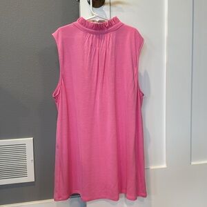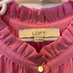 VGUC - LOFT - Women's size medium, ruffle neck, button down, pink. No rips or stains. Small dog, one cat, smoke-free home.