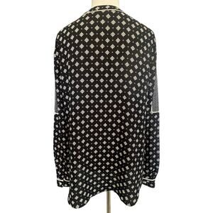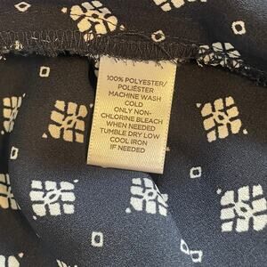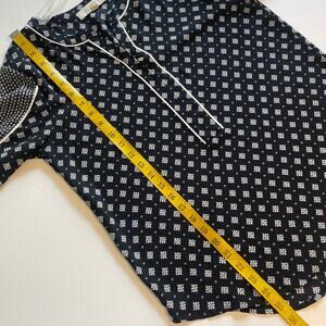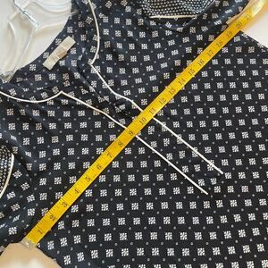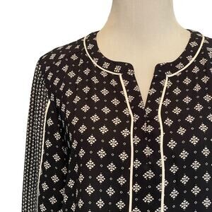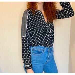 LOFT Mixed Print Popover Top Womens Small Navy Ivory Long Sleeve Peasant Blouse