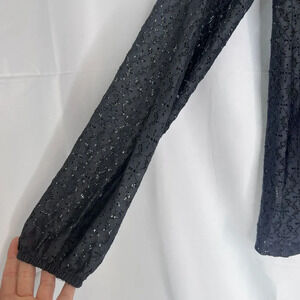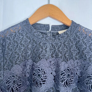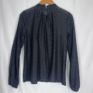 LOFT Mock Neck Gray Floral Lace Long Sleeve Semi Sheer Blouse Size XS