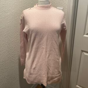 LOFT Mock Neck Light Pink Knitted Sweater Shoulder Buttons EUC Sz M Pullover