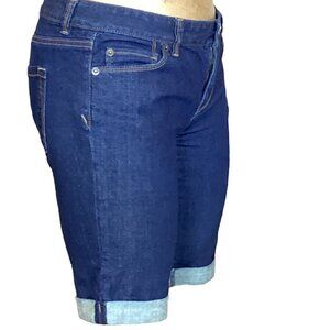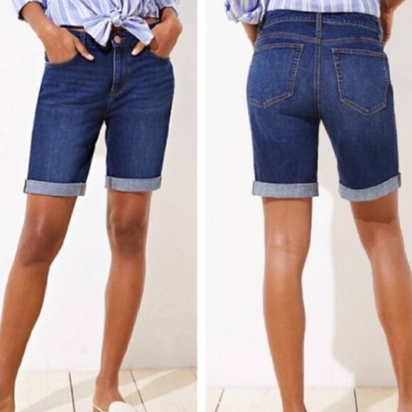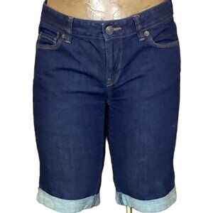 LOFT Modern Denim Jean Bermuda Walking Shorts Sz 2 Dark Wash Blue 289E