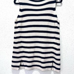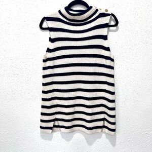 Ann Taylor Loft Ivory Navy Striped Ribbed Mock Neck Tunic Sweater.