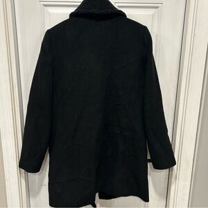 LOFT Moto Asymmetrical Black Wool Blend Faux Fur Peacoat Jacket Womens, Sz Small