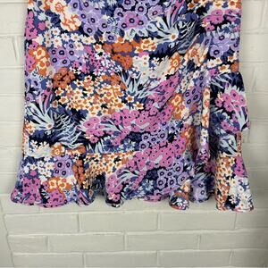 LOFT Multi Color Floral Side Ruffle Skirt Size M