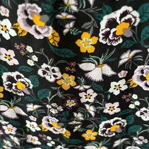 Loft Chic floral print top featuring a blend of black, yellow, and white hues. Perfect for adding a touch of elegance to your wardrobe.
