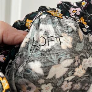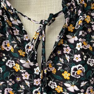 LOFT Multi Color Floral Tie Front Blouse with V Tie Collar SZ M